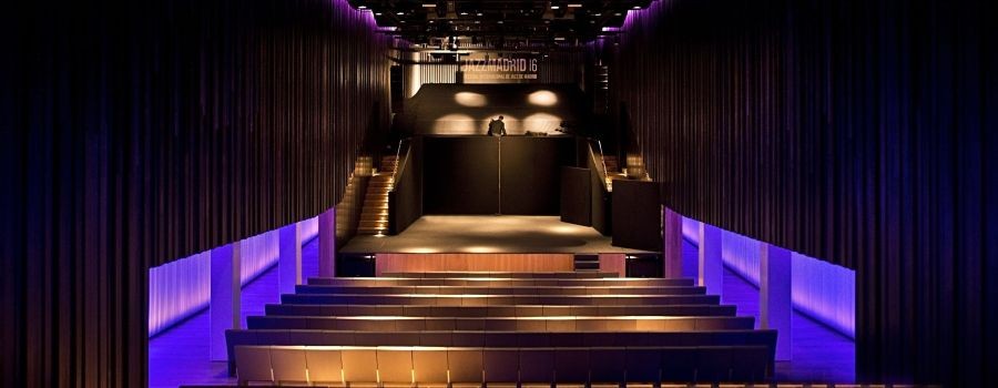The Auditorium of the Conde Duque Cultural Centre is a modern and versatile space devoted to music, clearly determined to become a living space and a musical reference for the city. Its surface area covers 1,301.58 m² and it can seat 260 people (there are two spaces for spectators in wheelchairs and two more seats for their companions). Additional use can be made of the choir area which can seat another 70 people on unnumbered benches.