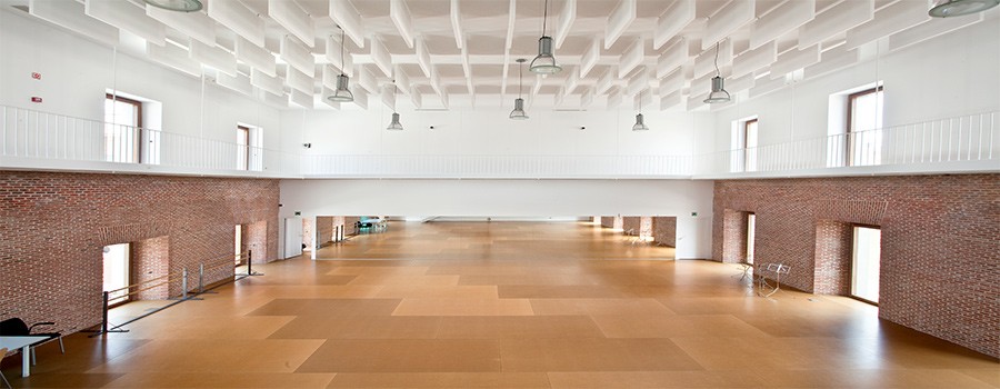 The two exhibition halls of the Conde Duque Cultural Centre face south and west and are located on the ground floor of the South Courtyard. Both halls are new and can be accessed from the Courtyard, while hall 1 is also accessible from the main lobby.