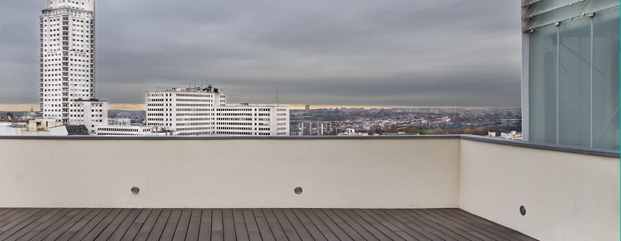The terrace of the Conde Duque Cultural Centre offers privileged views of the city centre. Perfect for presentations and special events, the Casa de Campo Park is visible from this unique space, as is the garden of the Liria Palace, the skyscrapers of Plaza España, the Metrópolis building that marks the start of Gran Via Avenue...