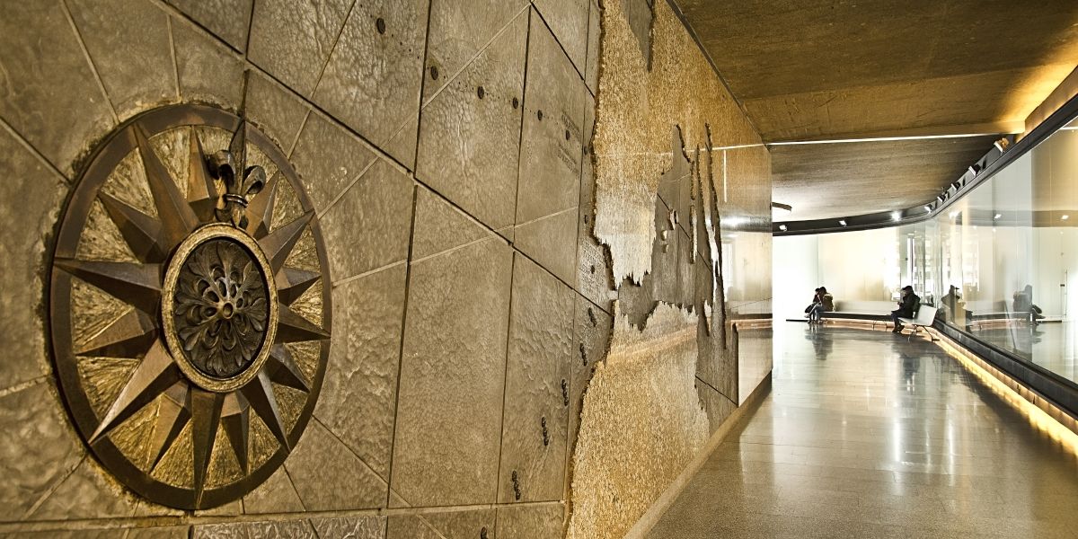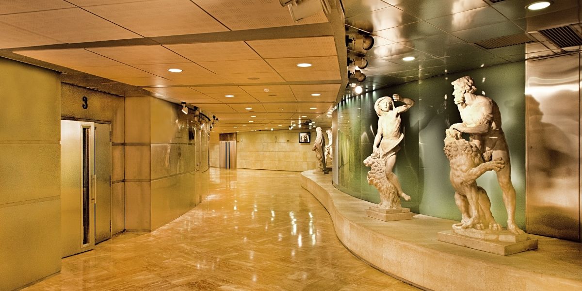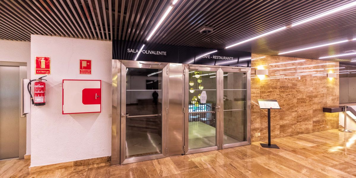 The interior corridor at Teatro Fernán Gómez is home to the famous map of the discovery of America, which is located behind the water curtain between the theatre and Plaza de Colón. This Corridor connects all of the theatre's spaces, including the two performance halls as well as the Exhibition Hall and the main foyer.