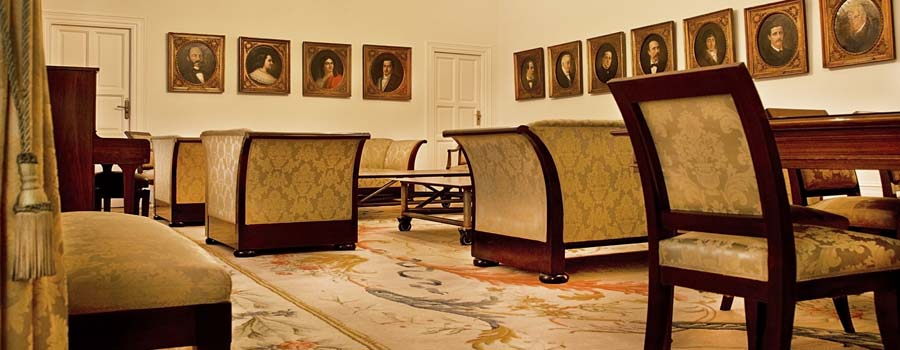 This large, open hall is located on the first floor, above the Small Hall. The hall, whose balconies look out over Plaza de Santa Ana, has a maximum capacity of 175 people and is used for ceremonies and events. It also provides access to two other spaces available for use, the Tea Room and the Tirso de Molina Room.