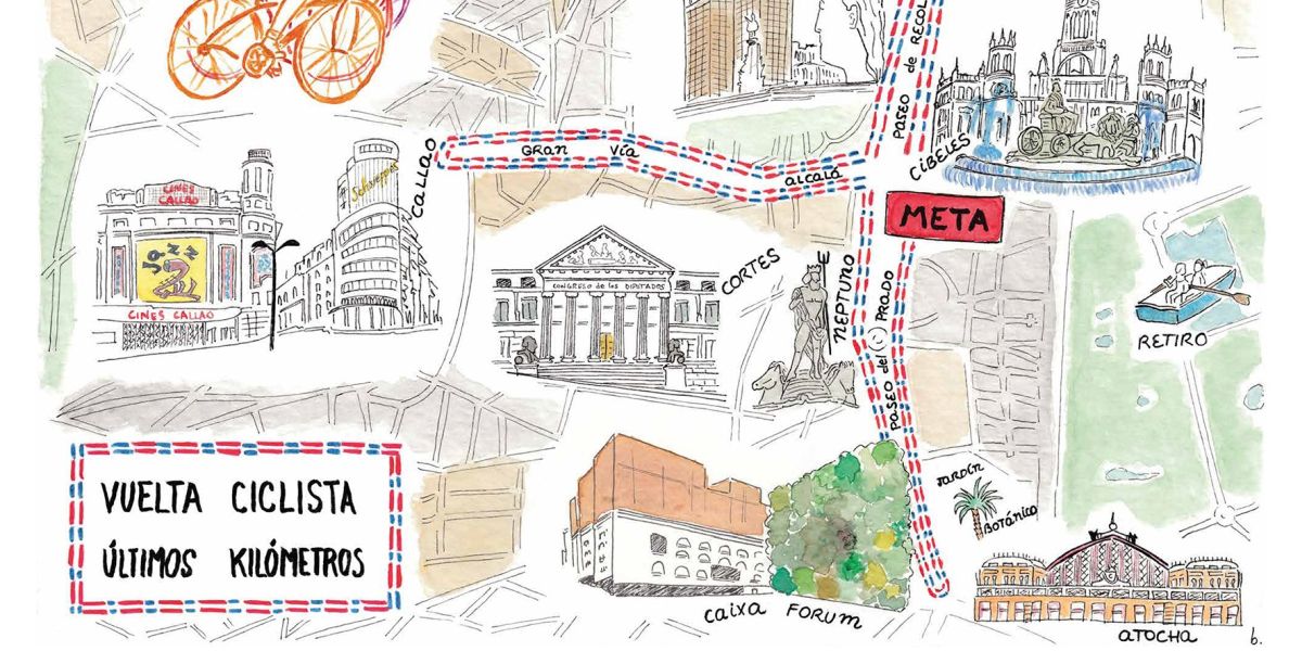La revista cultural ilustrada de Madrid dedica en septiembre, con la ilustradora Blanca Lacasa, su portada y sección ‘Mapa’ a la Vuelta Ciclista, que recorrerá el próximo 15 de septiembre las calles de la capital. El deporte también está presente en este número 29, en el que participan 10 ilustradoras y 5 ilustradores, con la prestigiosa Copa Davis, el mayor torneo anual del tenis internacional que ha elegido nuestra ciudad para celebrar su nueva Fase Final. Para este gran evento, que ya cuenta con la confirmación de los números 1 y 2 del tenis mundial, Novak Djokovic y Rafa Nadal, la ilustradora Ester Llamazares imagina los sitios por los que podría pasar una pelota que se escapa de la Caja Mágica.